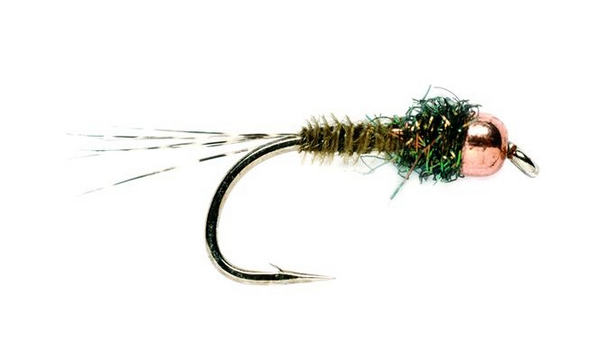 Vihreä pieni nymfi kuparikuulalla taimenelle ja harjukselle.
