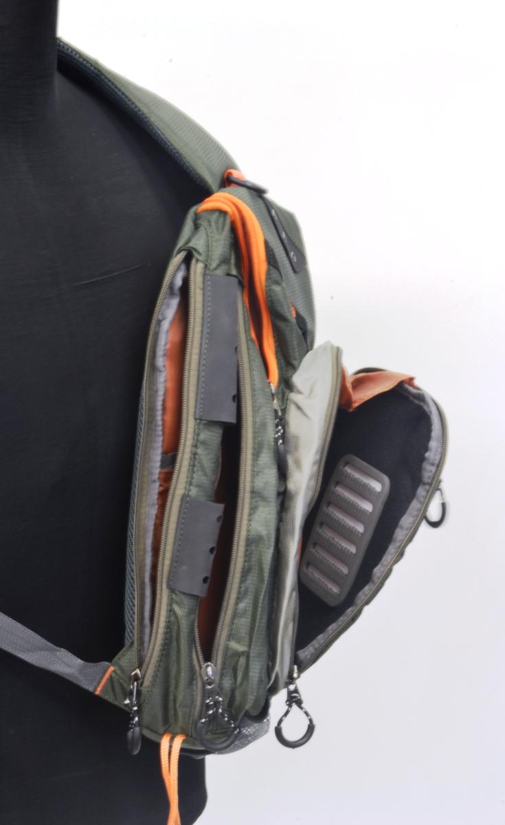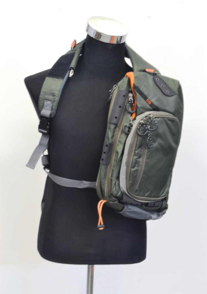 Sling Pack Pro on todella tilava , laadukas ja monipuolinen olkalaukku. Kalastus tilanteessa saat laukun selän taakse pois heittämisen edestä. Ja kun tarvitset tavaroita esille repusta, saat kiepsautettua sen kätevästi eteesi.