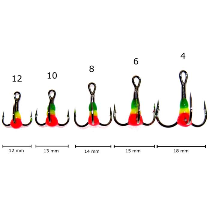 Erittäin terävä ja vahva kolmihaarainen värikoukku esimerkiksi tasapainopilkiin, pystypilkkiin tai jigin alle.