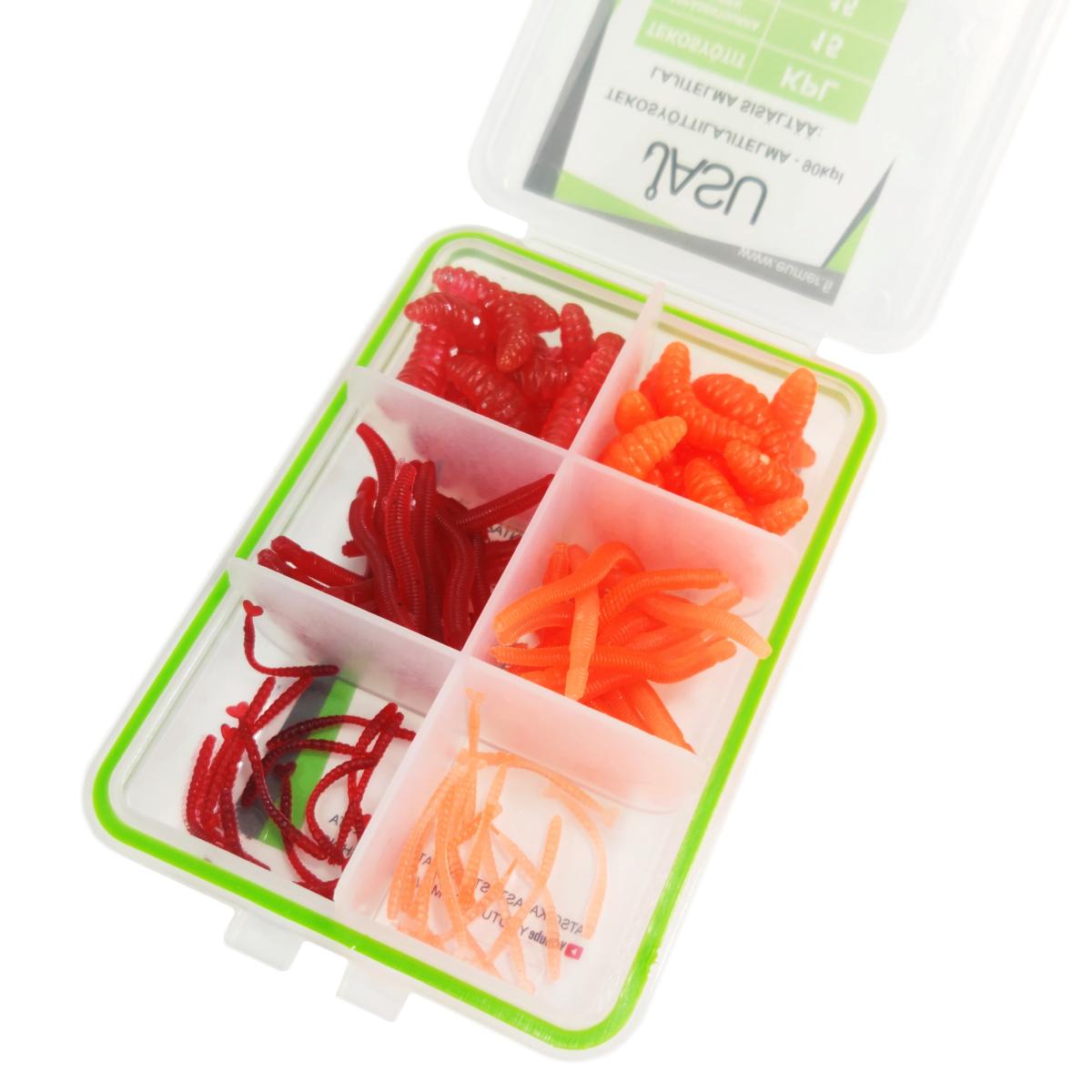 Keinosyöttilajitelman voi pitää aina varalta mukana, jos vaikka aitoja syöttejä ei saakaan tai ne loppuvat kesken. Keinosyötit ovat kalastavia eivätkä kuole kovin helposti. Kukaan ei myöskään kiellä käyttämästä näitä ympäri vuoden, sillä nämä maistuvat kaloille myös avovesikaudella. Setissä on mukana kahta eri väriä ja kolmea eri lajia olevia keinosyöttejä.