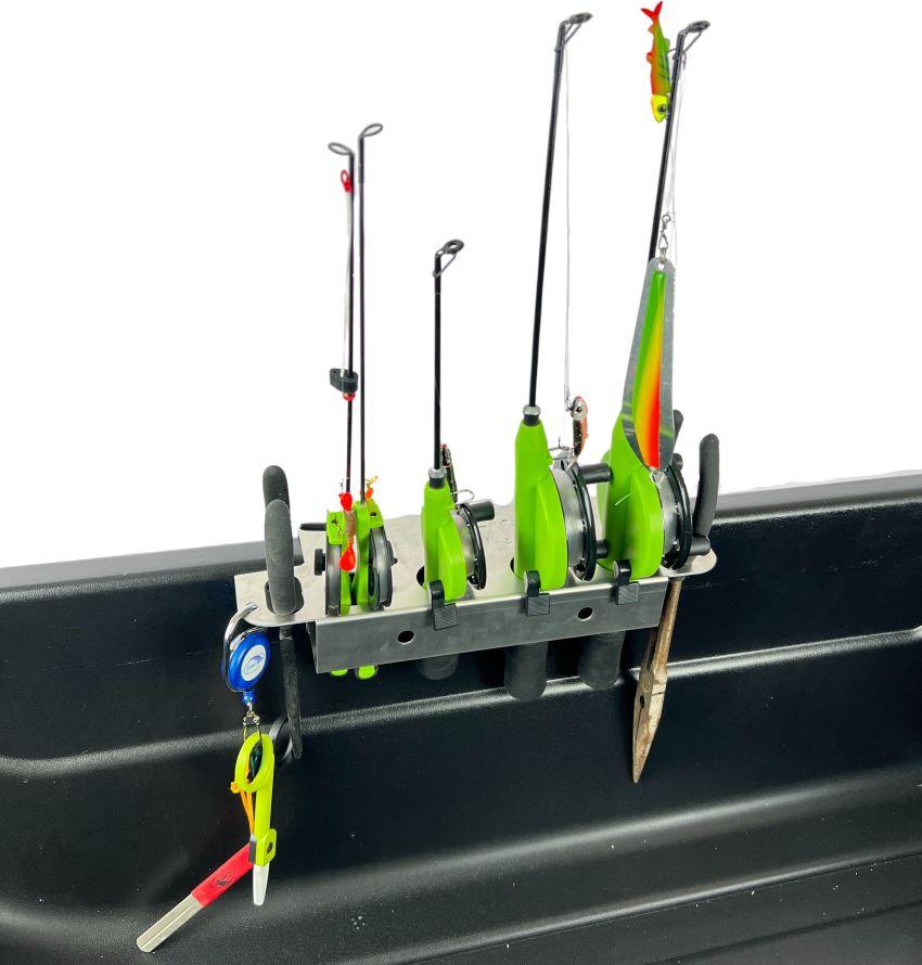 Kesällä telineen saa kiinnitettyä kaidekiinnikkeillä veneeseen ja löytyypä siitä valmiit ruuvireiät myös seinäkiinnitykseen. Tää meidän Mini on siis melkoisen monipuolinen ratkaisu kalastusvälineiden säilyttämiseen ja kuljettamiseen. Ruuviton kiinnitys soveltuu maksimissaan 4cm paksuiseen reunukseen ja paketissa mukana tulevien ruuvien ansiosta kiinnittäminen onnistuu tukevasti myös ohuempaan reunukseen.