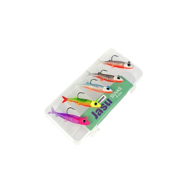 Suvas on tehokas aidon pikkukalan näköinen jigi kuhille ja ahvenille kaikkiin vesiin kaikkina vuodenaikoina. Jigilajitelma sisältää 5 eriväristä jigiä ja 5 pikkukalan pään muotoista jigipäätä valmiiksi asennettuna.
