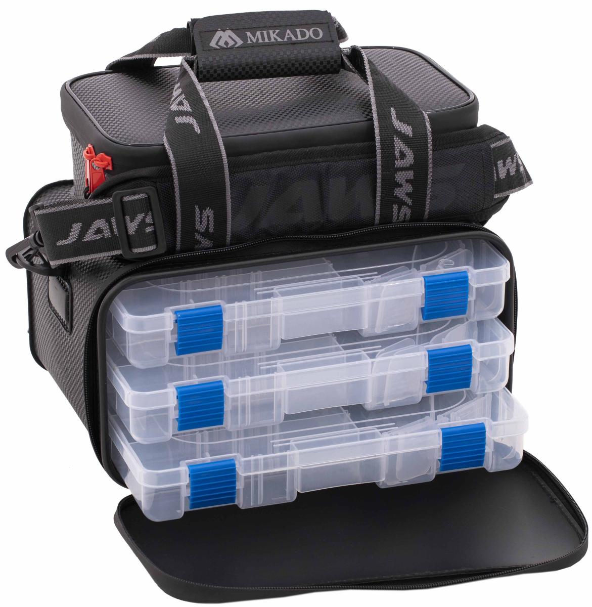 Mikado Eva Jaws Medium viehelaukku on moderni ja huippulaadukas vesitiivis EVA-solumuovilaukku vieherasioille ja tarvikkeille. Kahteen osioon jaettu laukku, ylemmässä osastossa tukeva Velcro-kiinnitys, jonka avulla saat sen myös halutessasi irti ja näin kevennettyä laukkua. Alemmassa osastossa tila 3 medium koon rasialle jotka myös mukana laukussa (Plano 3600 kokoinen, EI PLANON RASIA). Vahvat kantohihnat mukavilla pehmikkeillä. Mikado Eva Jaws Medium viehelaukku on erinomainen valinta lyhyemmille päiväreissuille sekä tilanteisiin, jolloin et halua / tarvitse kantaa koko arsenaalia mukana!