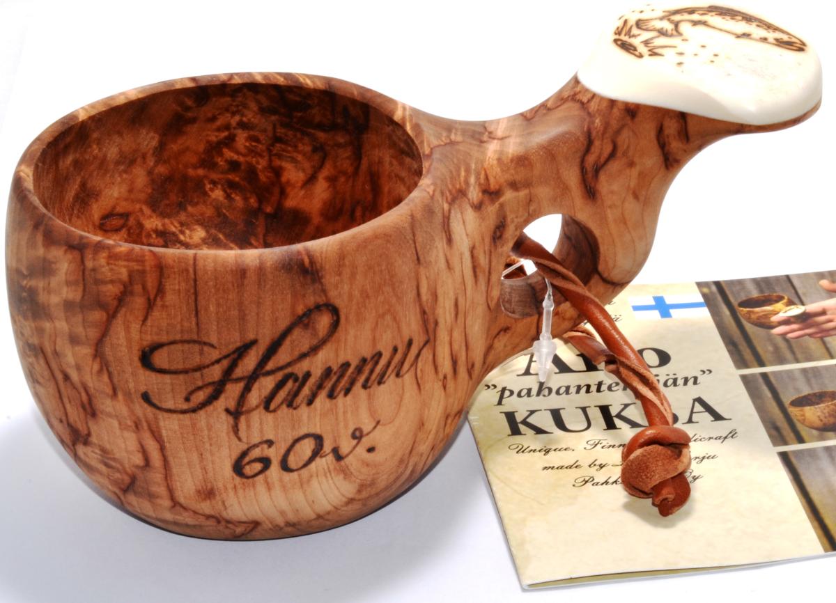 - Nyt mahdollisuus saada visakoivukuksa myös haluamallansa tekstillä! Mikäli haluat tilata yksilöidyn kuksan niin otathan yhteyttä meihin hyvissäajoin, viimeistään 10 arkipäivää ennen kuin tarvitset kuksan. Huomioithan myös, ettei yksilöidyillä kuksilla ole palautusoikeutta. Yksilöinnin hinta 25€ ensimäinen kaiverrus, lisäkaiverrukset 15€ / kpl. Esimerkiksi kaiverrus kylkeen ja pohjaan yhteensä 40€.