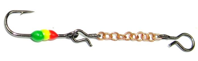 1-haarainen ketjuvärikoukku papukaija värityksellä. Ketjun molemmissa päissä on perholukko, joka mahdollistaa koukun nopean ja helpon vaihdon.