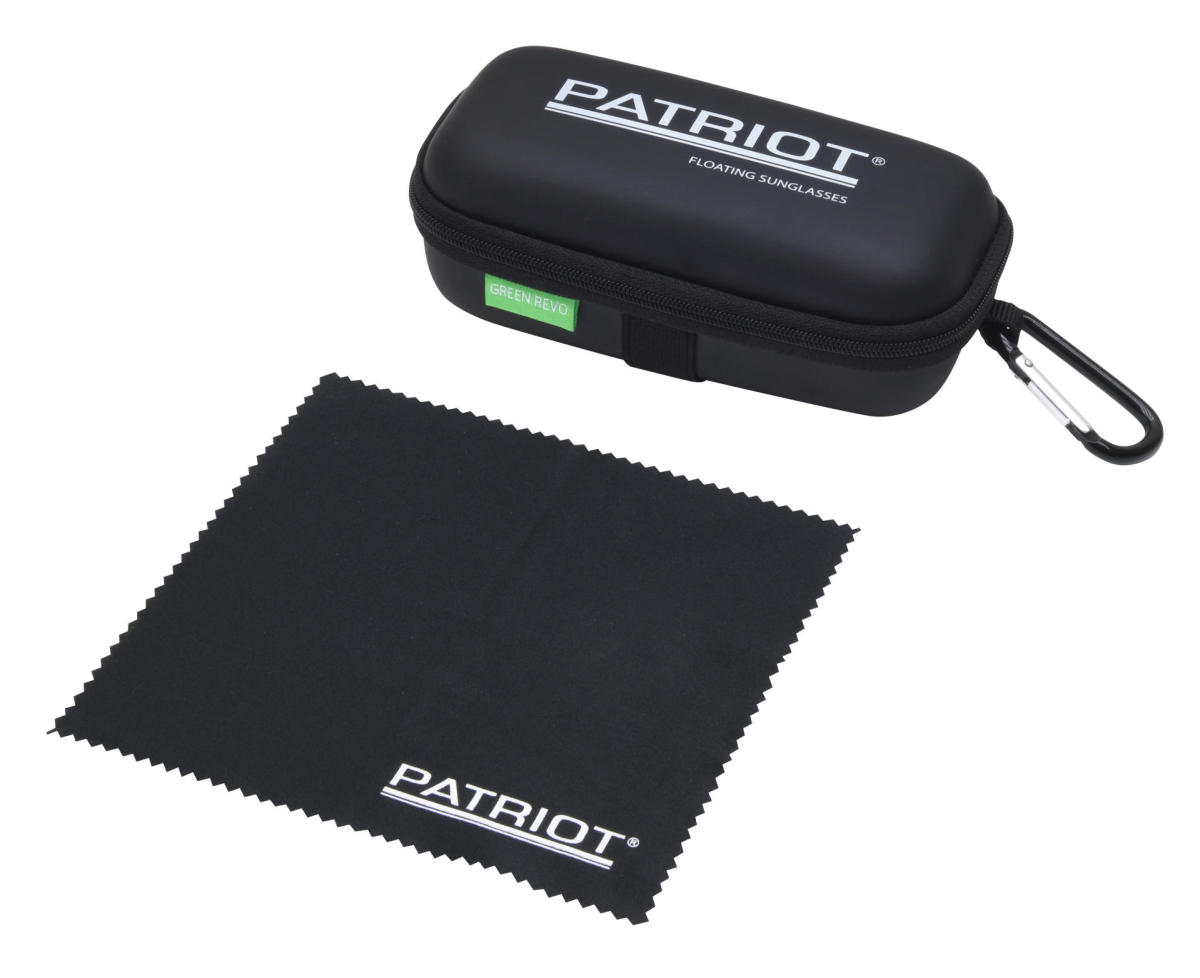 Patriot aurinkolasien mukana toimitetaan tukeva suojakotelo ja mikrokuituliina linssien puhdistamista varten.