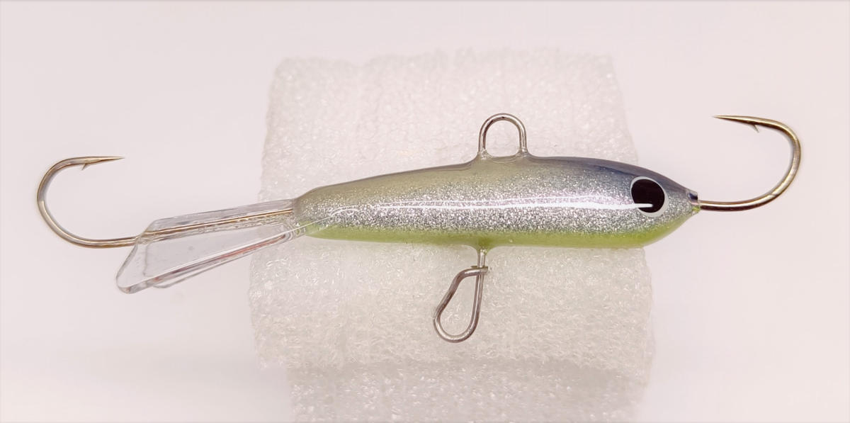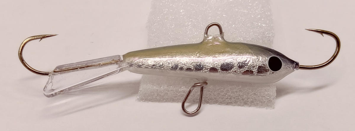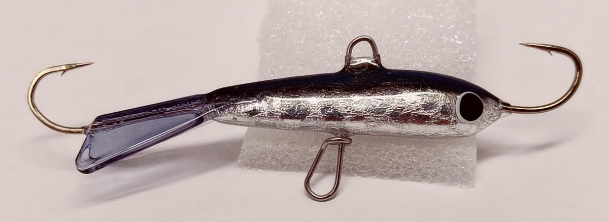 Pituutta koukusta koukkuun 78mm ja painoa 18g, pilkin alta löytyy erittäin kätevä pujotuslenkki johon alakoukku on helppo vaihtaa vaikka vauhdista, lenkin varsi on myös hieman pidempi ja uittaa alakoukkua hieman kauempana pilkistä jolloin myös kalojen irroitus nopeasti on helpompaa ja pilkin saa äkkiä takaisin veteen. Pommi on tehty kalaparvien hakuun nopeatempoiseen pilkintään jossa tarkoitus on täyttää pakki täyteen isoja körmyjä.