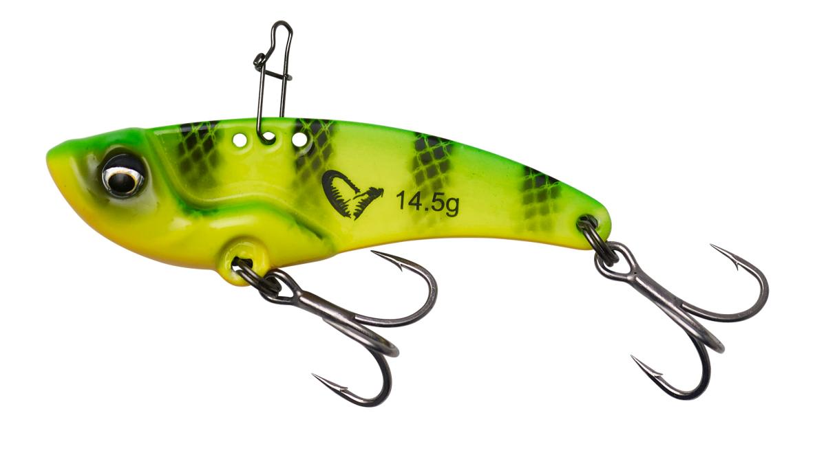 Savage Gear VIB Blade on viehe, joka värisee ja vilauttaa kylkiä kelatessa ja hakee vahvasti sivuille pysäytyksessä. Vieheessä on kolme eri kiinnityspistettä, joilla kaikilla saadaan erilainen uinti vieheeseen.