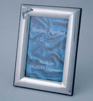 • Erittäin tyylikäs kiillotettua tinaa oleva valokuvakehys, jonka reunassa taimen