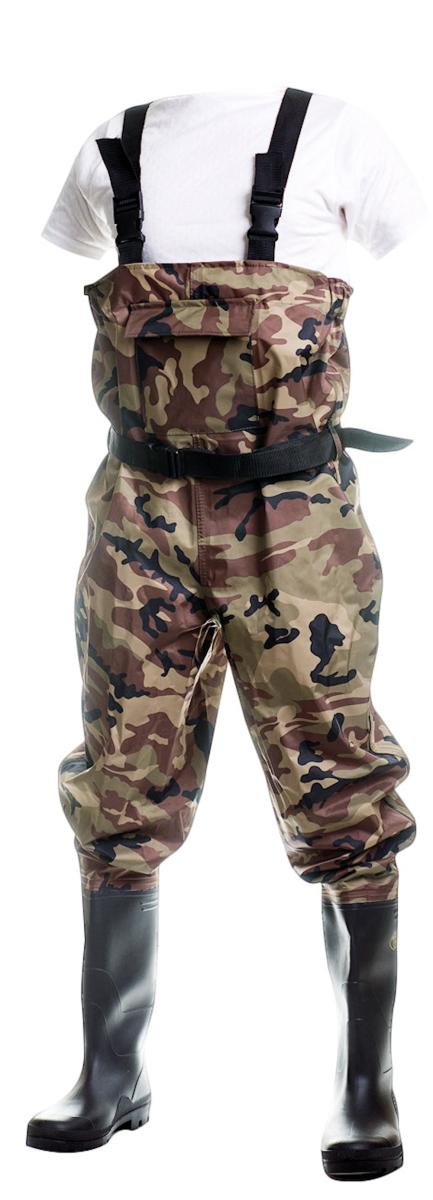 Wildfish Camo Pro kahluuhousut ovat maastokuvioidut kiintokengälliset PVC / Nylon kahluuhousut mm. kalastajille, metsästäjille ja rantatyöskentelyyn.