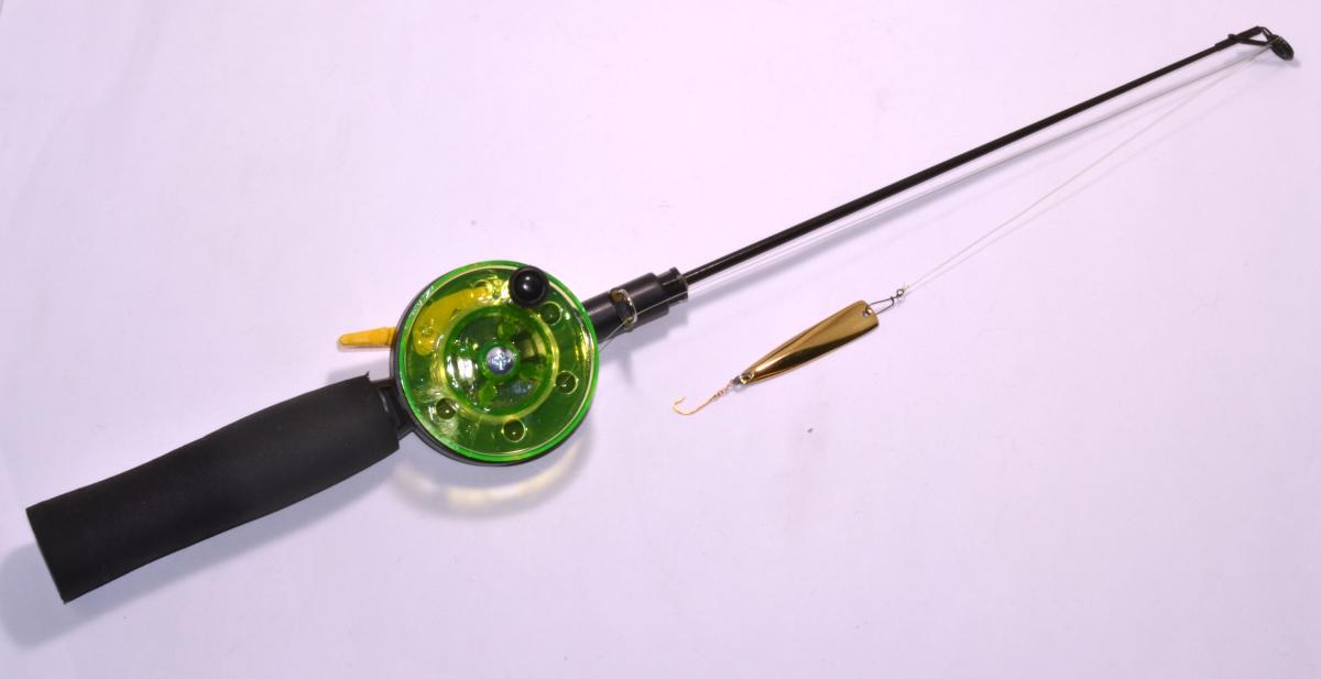 - Setissä 50mm halkaisijan kelalla oleva EVA-kahvainen pilkkivapa lasikuitukärjellä