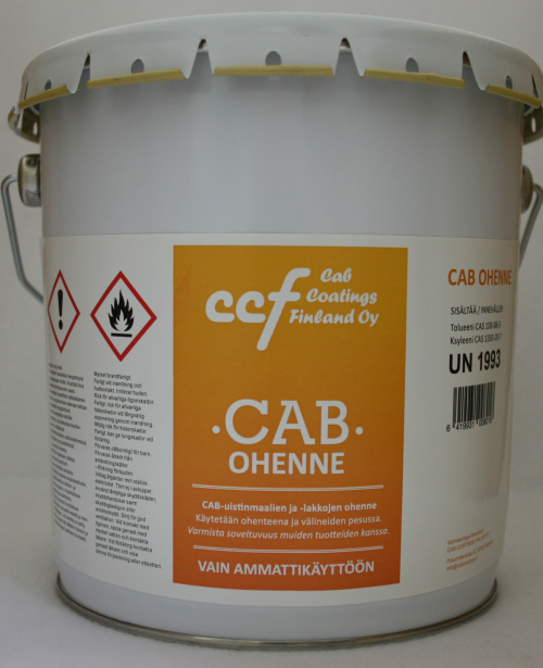 - CAB-maalien ohentamiseen käytetään joko Ohenne 8:aa tai asetonia. Maalit ovat sekoitettuna käyttövalmiita sivellinlevitykseen. Käytettäessä kynäruiskua ohennetaan maalia vähintään 1:1. Ohennussuhde riippuu käytettävästä ruiskusta sekä maalityypistä