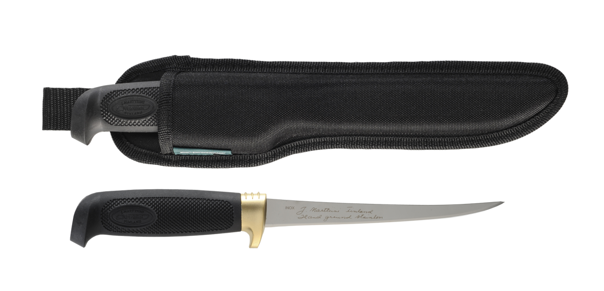 Huippuunsa hiotulla, terävällä ja notkealla ruostumattomasta kromiteräksestä valmistetulla terällä saat kauniita fileitä helposti. Tämä filetti on parhaimmillaan noin 2-3 kg:n painoisen kalan käsittelyssä.