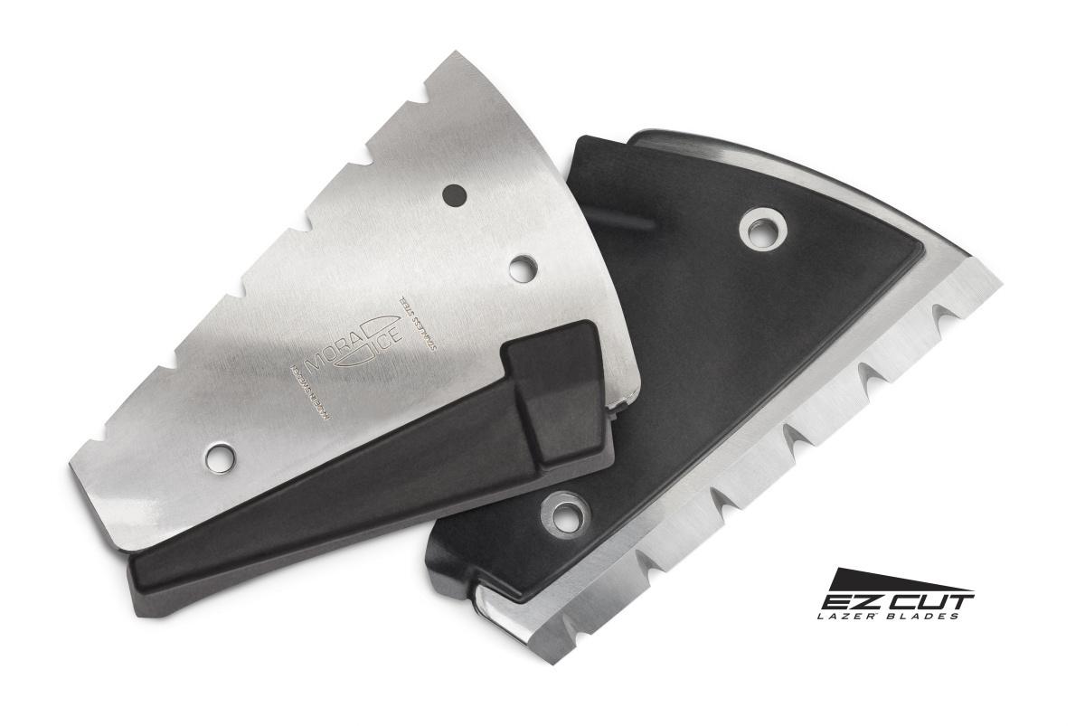 Mora Ice EZ Cut Lazer Blades -teräpalojen ansiosta kairaaminen on nopeampaa, helpompaa ja tehokkaampaa. Moottorivääntimille optimoitujen ratkaisuiden vuoksi kairaaminen rasittaa moottoria vähemmän, jolloin polttoainetta kuluu vähemmän ja akut kestävät kauemmin. Hammastetut teräpinnat kestävät kauemmin terävänä, jopa epäpuhtauksia sisältävää jäätä kairatessa.