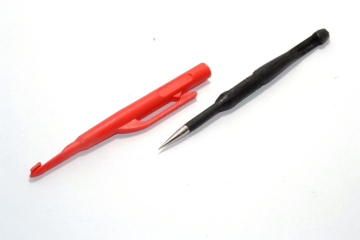 Koukunirroittaja molemmissa päissä ja neula keskellä.