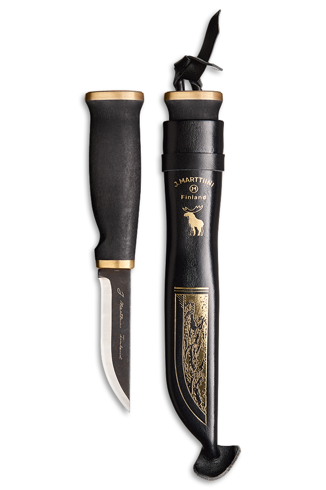 Musta hirvi on kaunis ja käytännöllinen puukko luonnossa liikkuvalle ja loistava lahja myös luonnon ja muotoilun ystävälle!