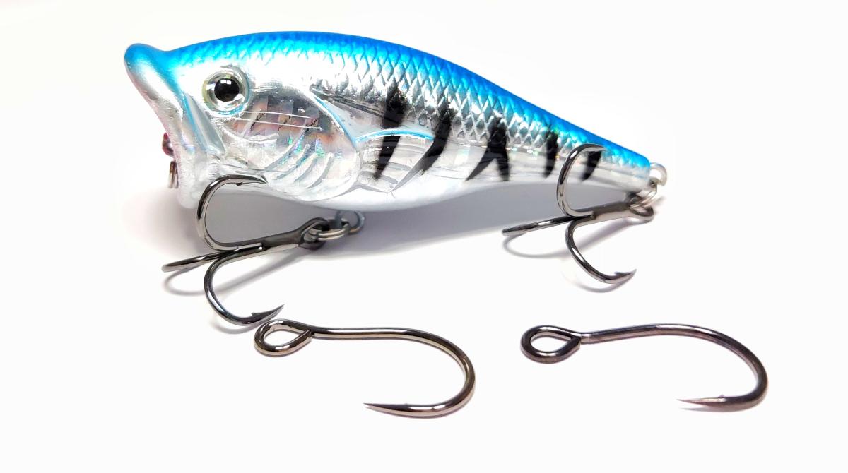 Pakkaus sisältää kolmihaarakoukkujen lisäksi 2 kpl yksihaaraisia koukkuja, joiden avulla Plopper Popperilla voidaan kalastaa vesikasvillisuuden seassa ilman, että koukut tarttuvat kiinni kasvillisuuteen.