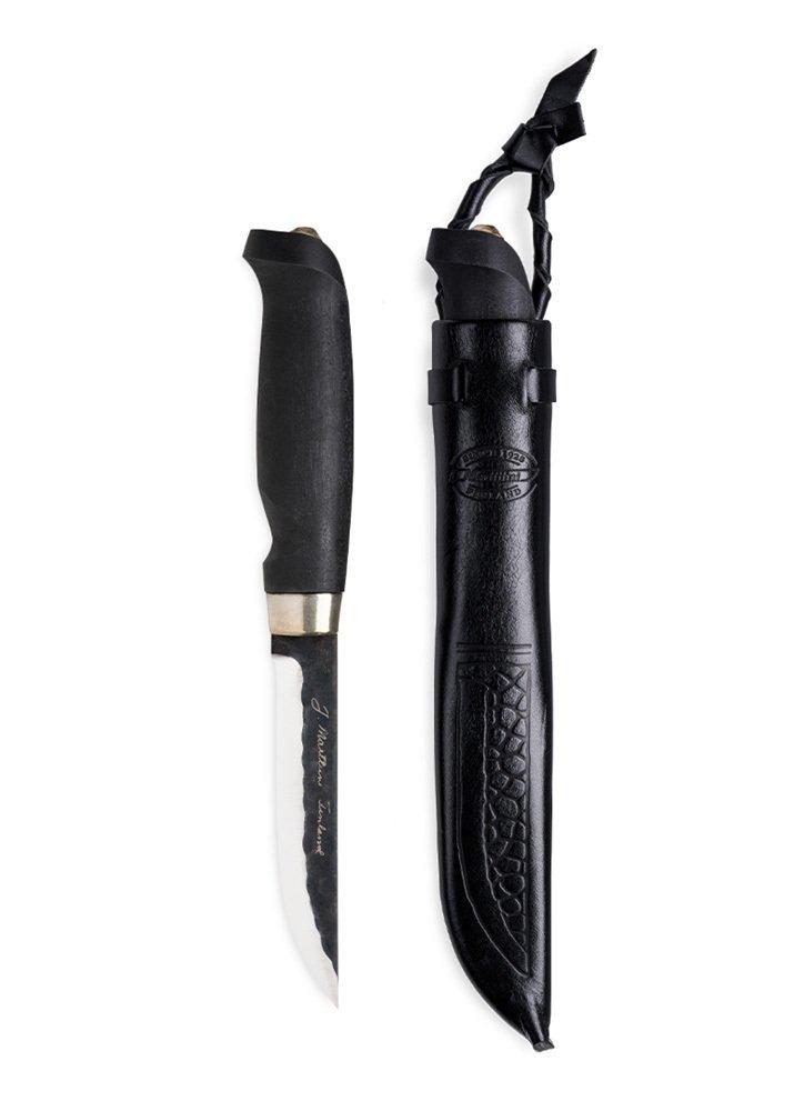 Ilves Black Edition on perinteinen Ilves uudella ulkoasulla. Klassisen Ilves-puukon parhaat käyttöominaisuudet on puettu moderniin, hillityn eleganttiin ulkoasuun. Mustaksi värjätty, luonnollisella suojaöljyllä käsitelty koivukahva sormikololla takaa erinomaisen otteen. Kaunis takoterä on lujaa hiiliterästä.