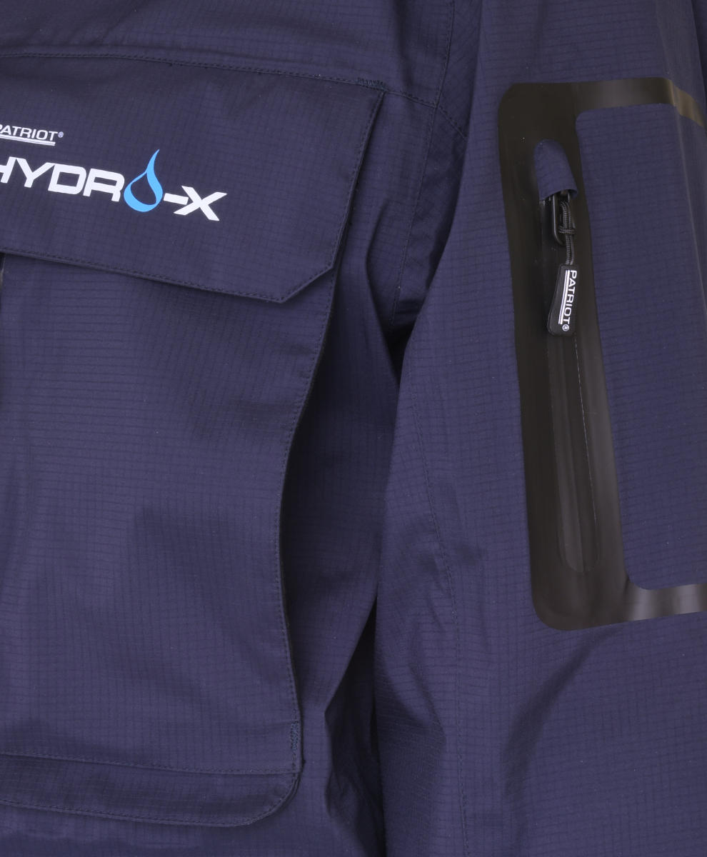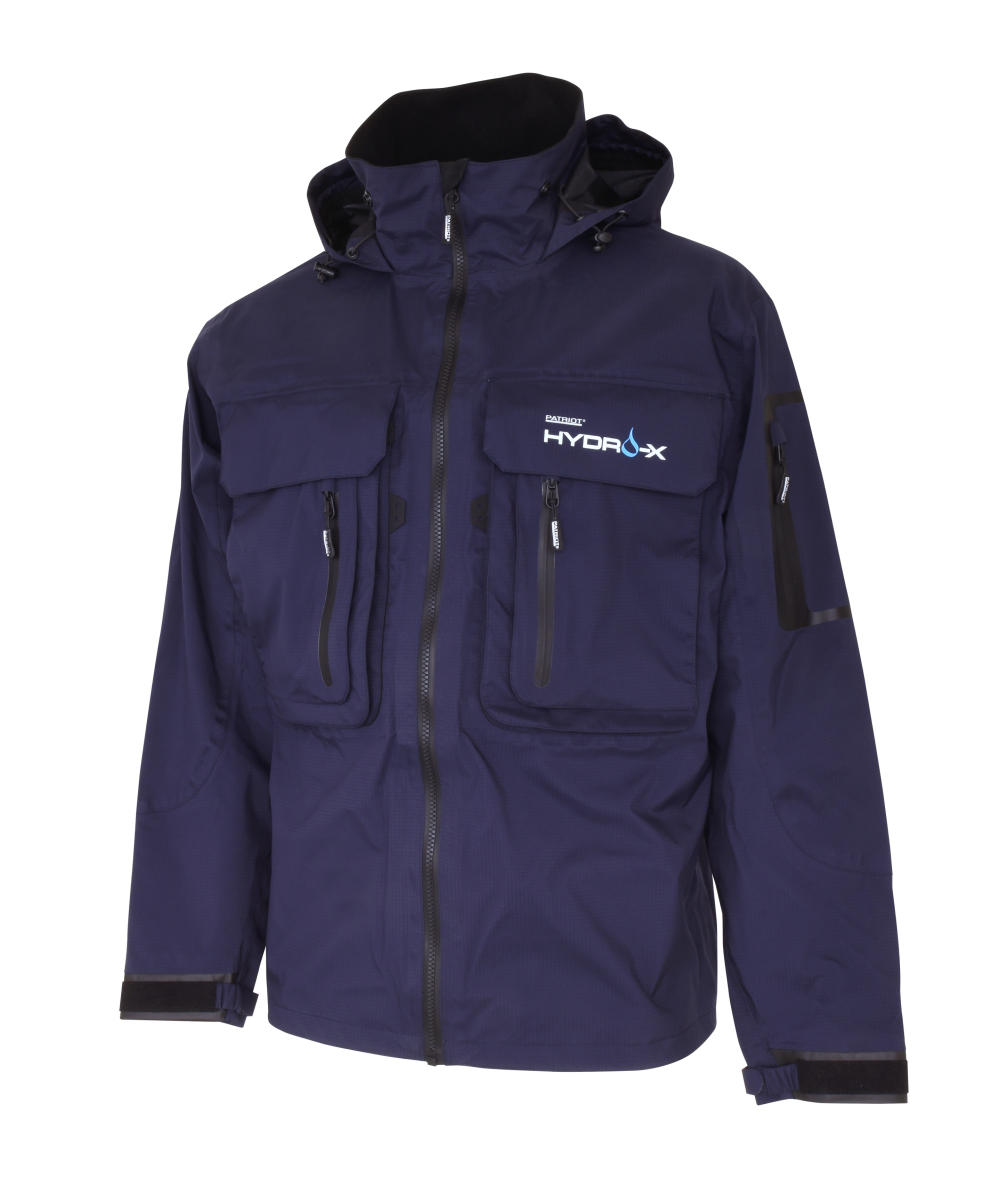 Vuoreton ja pieneen tilaan pakkautuva Patriot Hydro-X takki on valmistettu vahvaa ja repeytymistä estävää Rip-Stop rakennetta hyödyntäen. Takin ulkokangas on myös käsitelty vettä ja likaa hylkivällä DWR (Durable Water Repellent) pinnoitteella. Monikäyttöisessä Patriot Hydro-X takissa on korkealle sijoitetut taskut ja käärittävä helma, jonka ansiosta takki soveltuu erinomaisesti myös kahluukäyttöön.