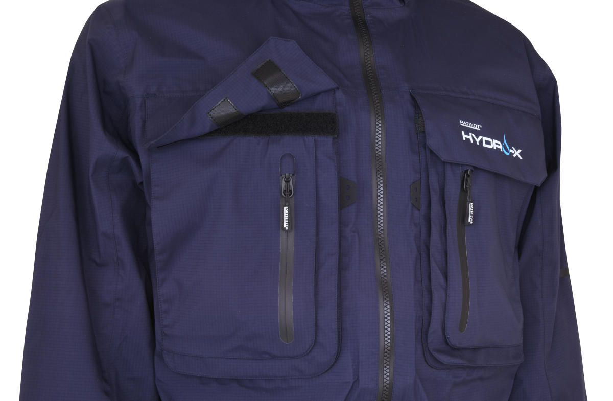 Kevyt ja hengittävä Patriot Hydro-X takki on suunniteltu erityisesti kalastajia varten. Täysin vesitiivis kolmikerroksinen kuorirakenne, teipatut saumat ja hyvin suojaava huppu takaavat kuivana pysymisen haastavammissakin olosuhteissa. Patriot Hydro-X takin leikkaus, taskujen sijoittelu ja tekniset ominaisuudet takaavat täydellisen liikkuvuuden ja käyttömukavuuden niin viehe-, kuin perhokalastajallekin. Takissa on kaksi suurikokoista rintataskua viehe- ja perhorasioita varten sekä kolme roiskevesisuojattua taskua, joissa tavarat pysyvät säältä suojassa. Rintataskujen vieressä on myös kiinnityspaikat esimerkiksi pihdeille ja muille pientarvikkeille sekä lisäksi takin selkämyksessä on kiinnityslenkki haavia varten.